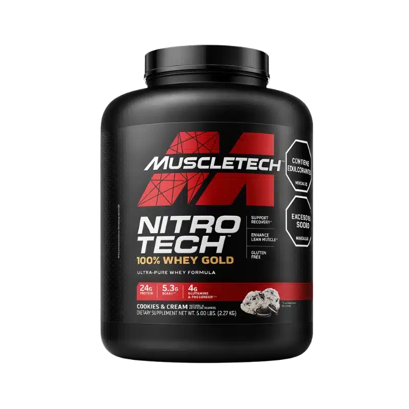 Nitro Tech 100% Whey Gold de Muscletech es una fórmula avanzada de whey protein diseñada para deportistas que buscan una proteína de alta calidad como parte de su estrategia nutricional diaria. Esta presentación de 5 lb es ideal para quienes entrenan de forma constante y requieren una fuente práctica de proteína para complementar su alimentación.