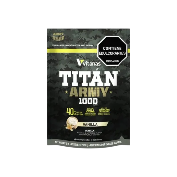 TITÁN ARMY es una fórmula completa con proteínas concentradas de suero lácteo, carbohidratos y una combinacion de BCAAs, glutamina, probioticos, enriquecida con vitamina C, vitamina D3 y una premezcla de vitaminas escenciales